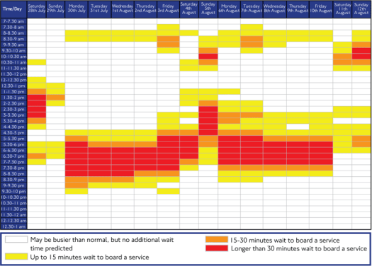13-24 July – Shuttle buses running at 60-70 percent of the rull operation to provide pre-Games service.